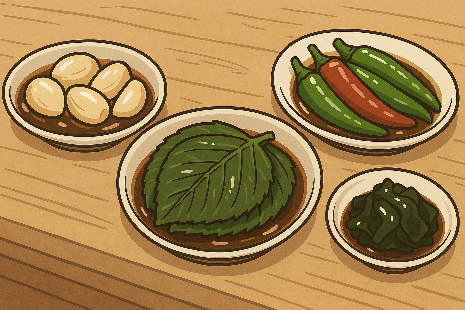 - 간장장아찌: 깔끔하고 깊은 감칠맛